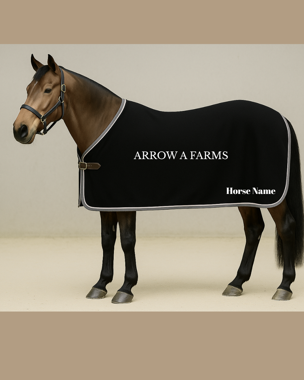 Embroidery Option: Arrow A in Georgian Applique (white) with black satin stitch, optional name in white block letters left corner