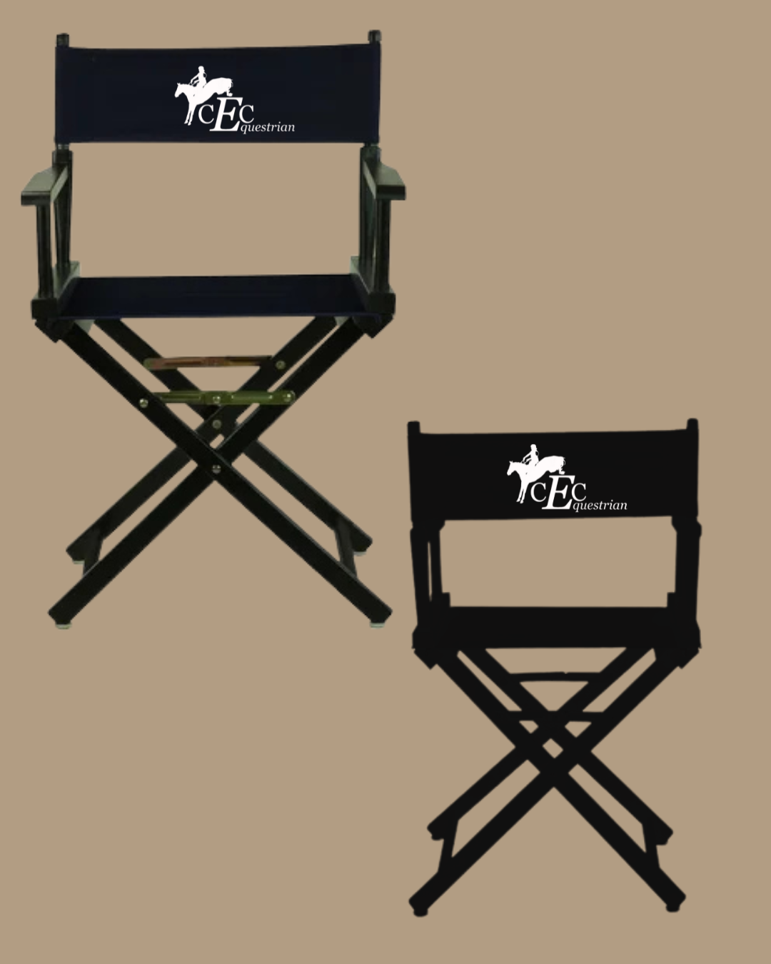 The CEC director's chair has a black frame, black back and seat, and white embroidery. Click here to go to the product page