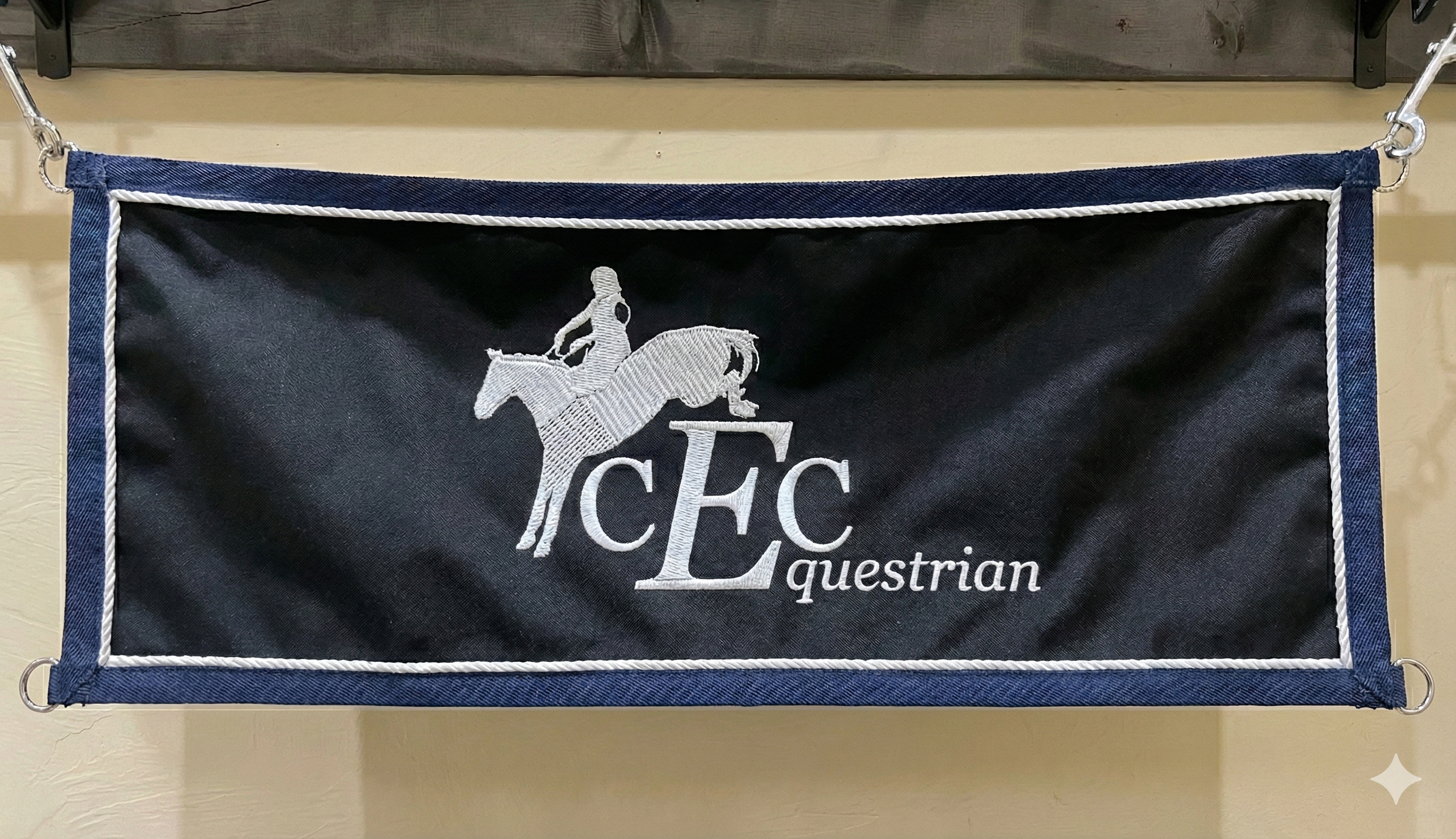 CEC's stall banner is 36 x 36 and solid black with white piping and Navy trim. It features the CEC logo. To order follow this link then select CEC from the trainer dropdown.