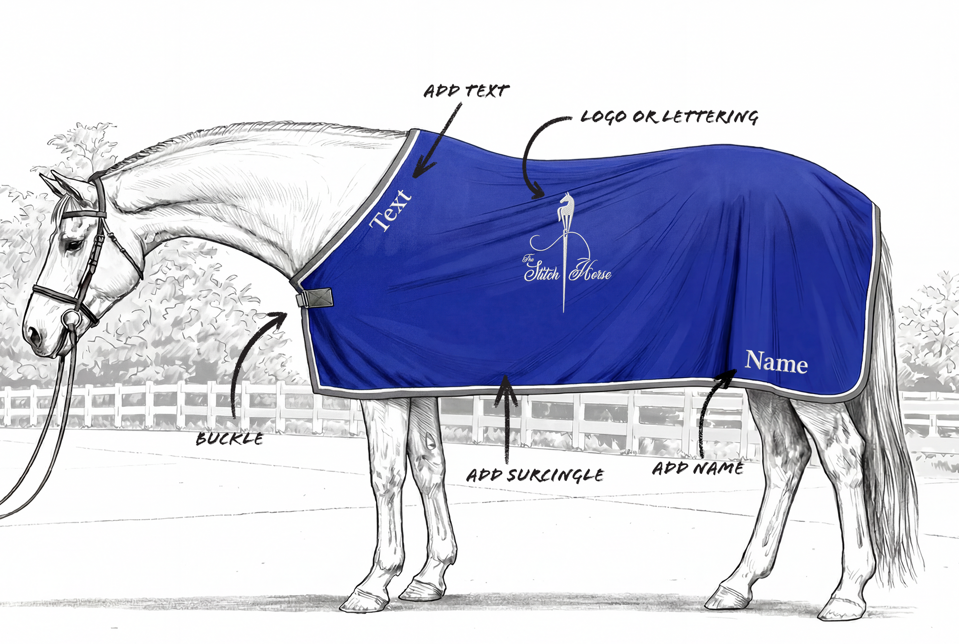 You can customize your scrim to match your barn or trainer, or build your own from scratch. Choose your color palette, trim, piping, and embroidery details — or select your trainer below. If we have their specifications on file, we’ll make yours to match. Be sure to check out the trainer pages to see how they’ve designed theirs.